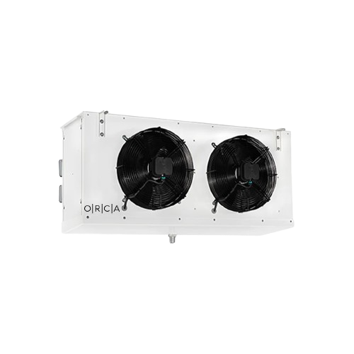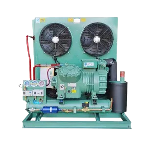 Double-condenser air-cooled condensing unit with a mounted electric panel, designed for efficient cooling, reliable performance, and easy installation.